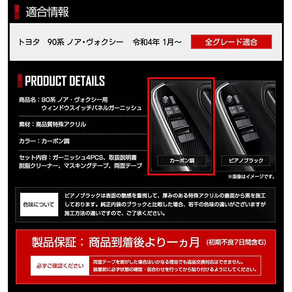 YOURS VOXY NOAH Window Switch Panel, 4 Pieces, Color: Carbon Tone, VOXY NOAH TOYOTA [2] m